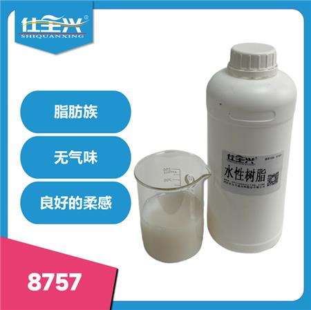 8757是一款基于聚酯-聚碳酸酯的脂肪族阴离子型聚氨酯分散体。无气味,用于弹性及柔性涂料,良好的柔感,对多种基材的附着力好,供应形式 不含助溶剂,良好的耐水解性,适用期长。