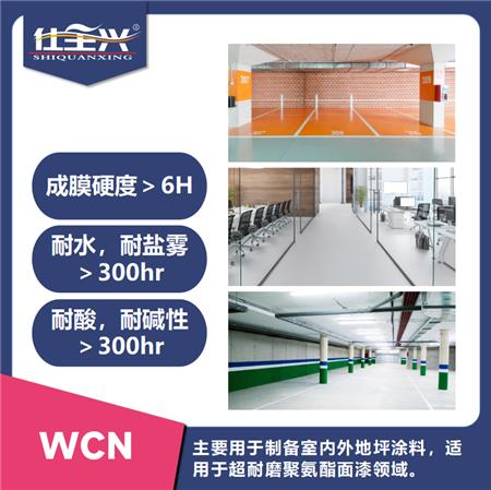 WCN是单组份超耐磨聚氨酯树脂,产品气味低,主要用于制备室内外或室内地坪涂料,适用于超耐磨聚氨酯面漆领域。漆膜具有很好的耐化学性和机械性能,自干快、附着力好、耐磨性好、耐候性好。