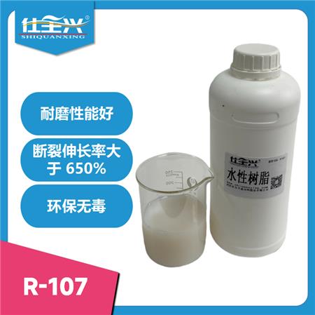 R-107是一款阴离子脂肪族聚氨酯分散体。单组份使用,环保不含 APEO,可用作改善丙烯酸乳液柔韧性的树脂,漆膜具有优异的耐磨性,耐紫外性,漆膜断裂伸长率大于 650%,在尼龙和铝基材等金属上附着力好。可用于塑料、印刷和包装、防水等,尤其适用于纺织品上的保护层和印刷。